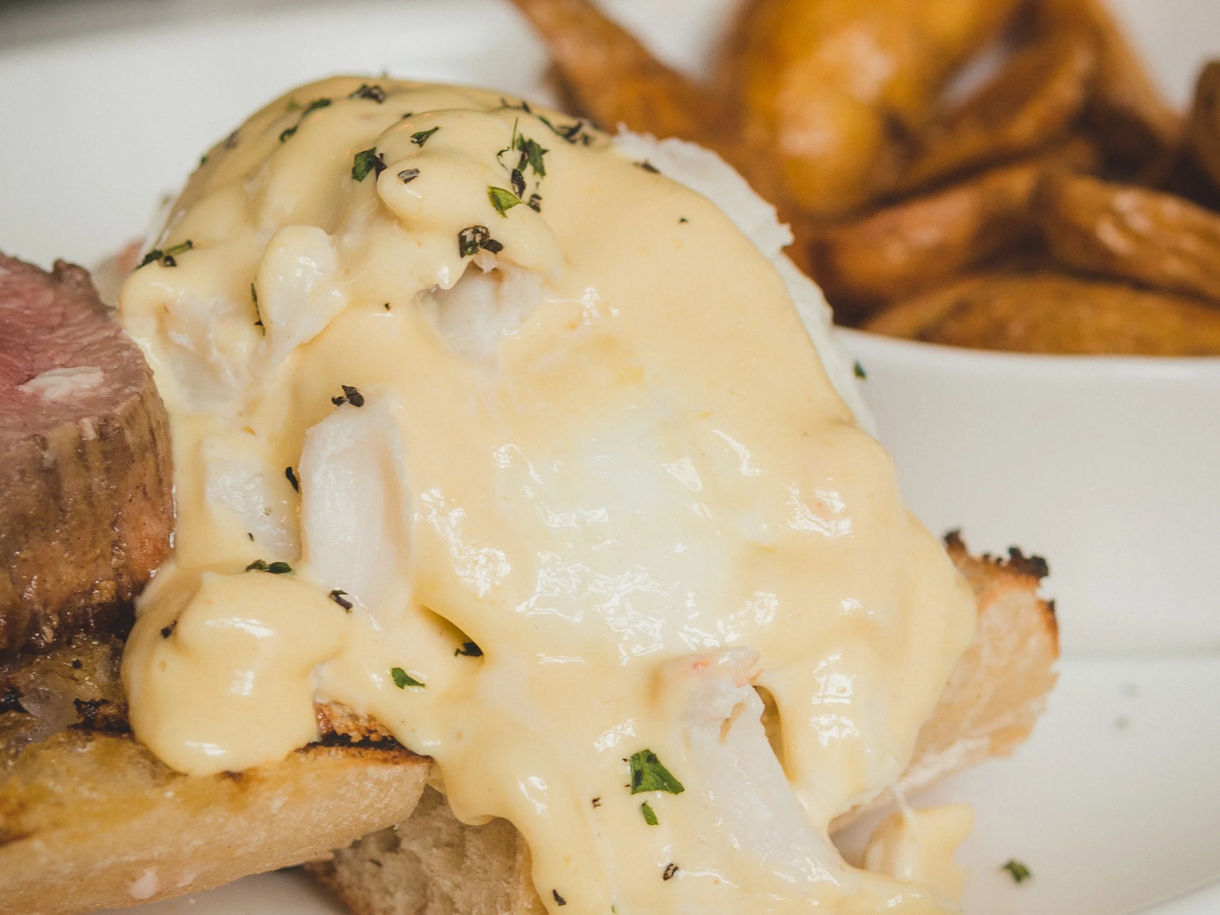 Between Dad’s benedict and my burger, everything was perfectly prepared and perfectly seasoned. The filet on the Surf & Turf Benedict was delicious and so tender, and I couldn’t get enough of the flavor of my burger or that of the truffle cream served with the french fries.